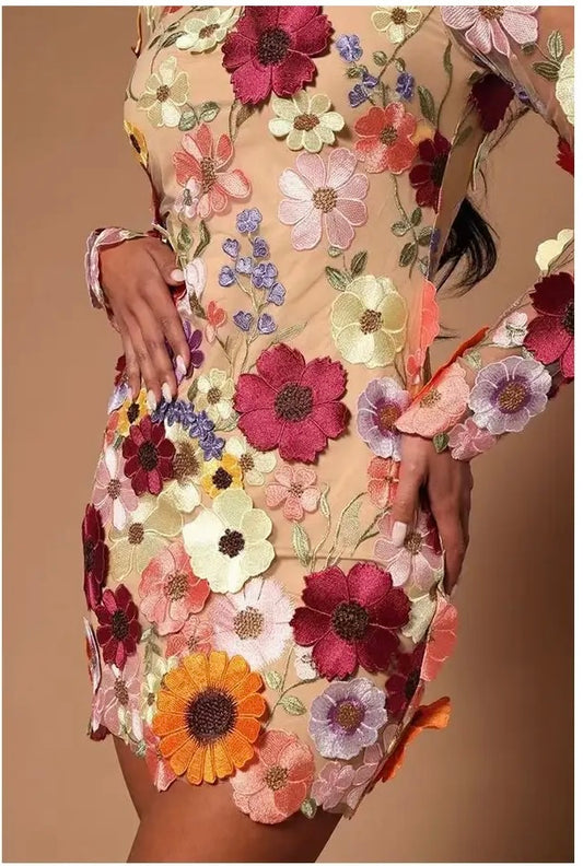 Three Dimensional Floral Sexy Dress